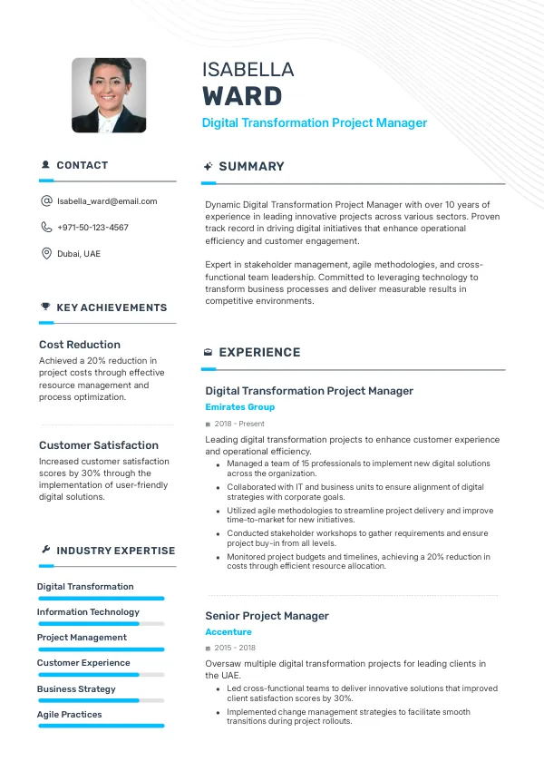 Resume Examples for Digital Transformation Project Managers