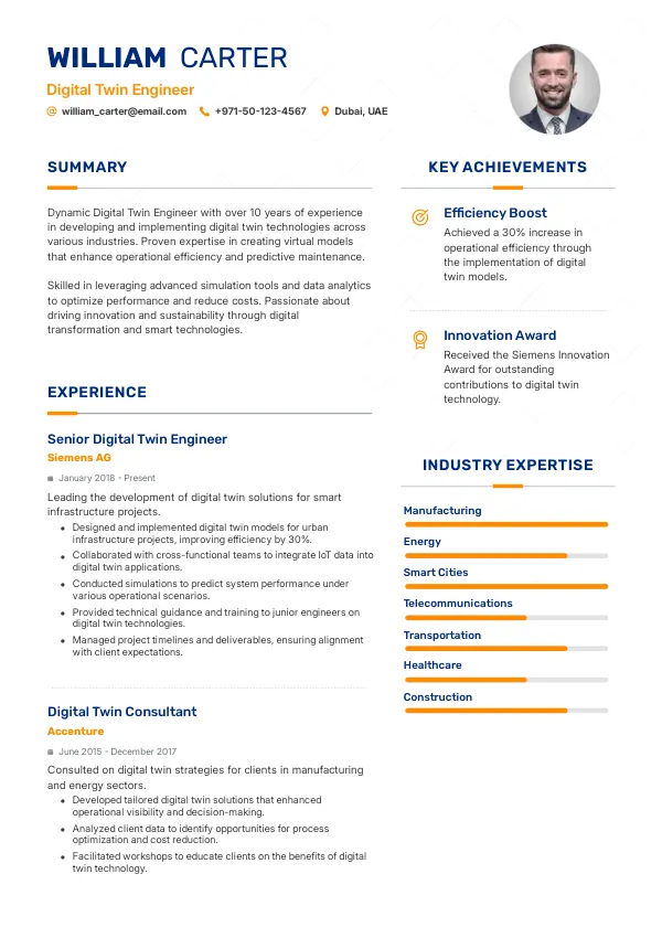 Resume Examples for Digital Twin Engineers