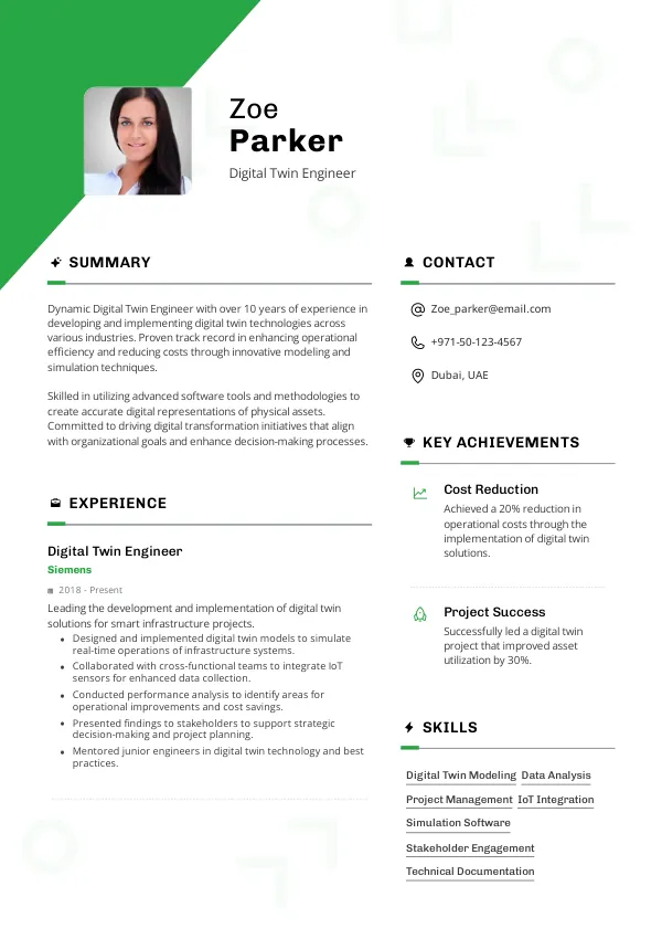 Position yourself for success as a Digital Twin Engineer in 2026 with a strong resume that highlights your skills and contributions. TrueCV can help you align your profile for long-term residency and Golden Visa opportunities.