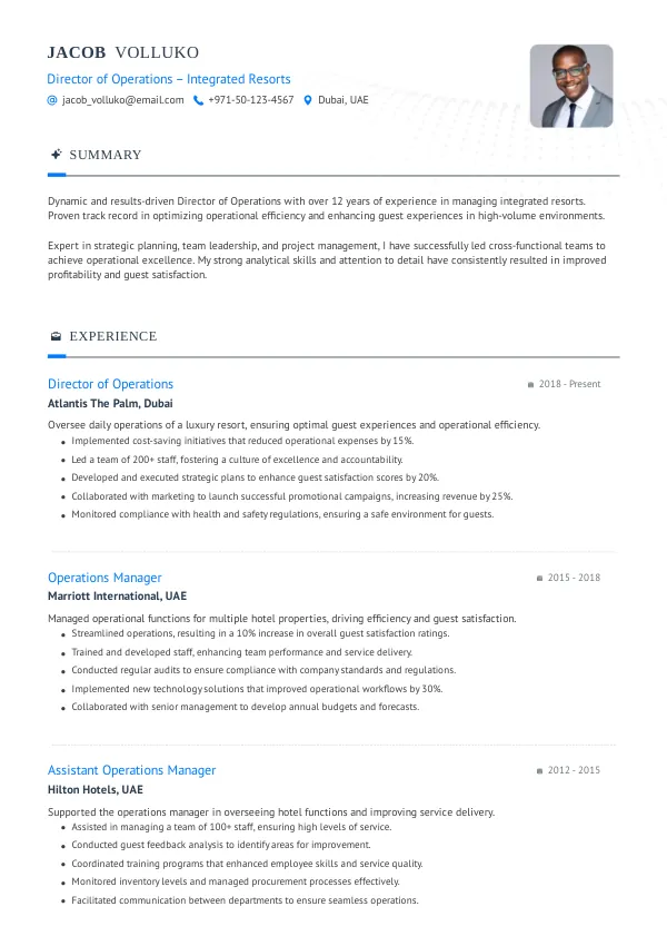 Build My Director of Operations – Integrated Resorts ResumeEvolving Responsibilities of the Director of Operations
