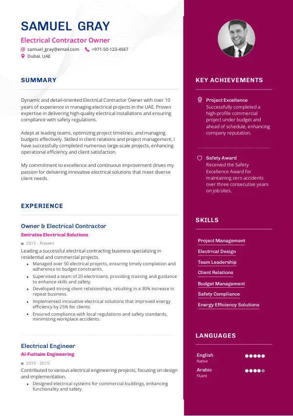 Resume Examples for Electrical Contractor Owners