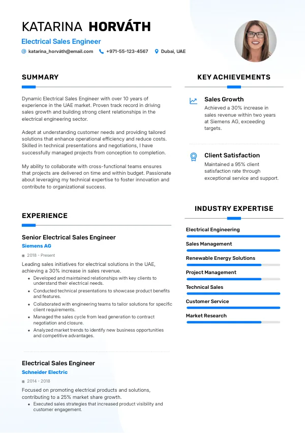 Leading companies in the UAE, such as Siemens, ABB, and Schneider Electric, are ramping up their hiring of Electrical Sales Engineers in 2026. These employers are seeking candidates who can drive sales in the rapidly growing renewable energy sector. A TrueCV-optimized resume can help you align your skills with the specific needs of these top employers, increasing your chances of securing a position.