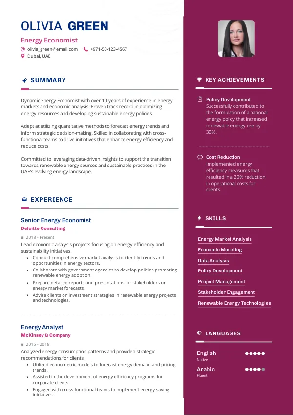 In 2026, the role of an Energy Economist in the UAE's Oil & Gas industry will expand to include a greater focus on sustainability and renewable energy integration. The increasing importance of carbon pricing and emissions trading systems will redefine economic modeling practices. A TrueCV-optimized resume will highlight your adaptability to these new economic frameworks, making you a more attractive candidate.