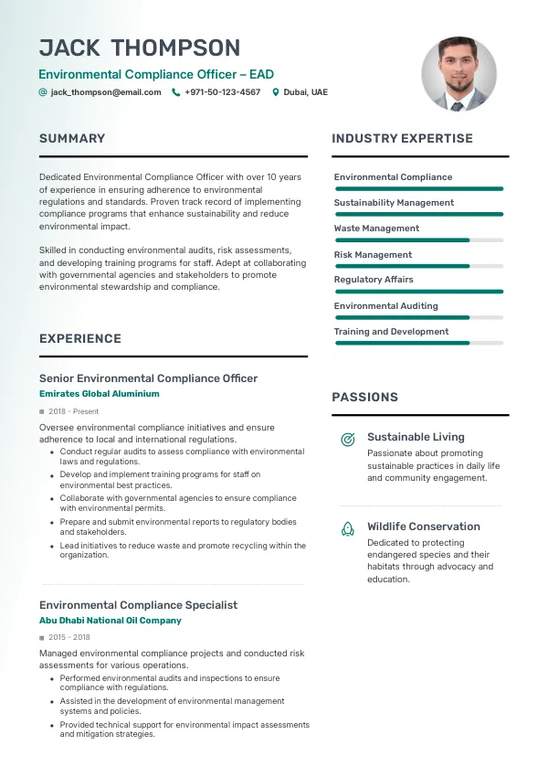 Build My Environmental Compliance Officer – Environment Agency – Abu Dhabi (EAD) ResumeEvolving Responsibilities of Environmental Compliance Officers
