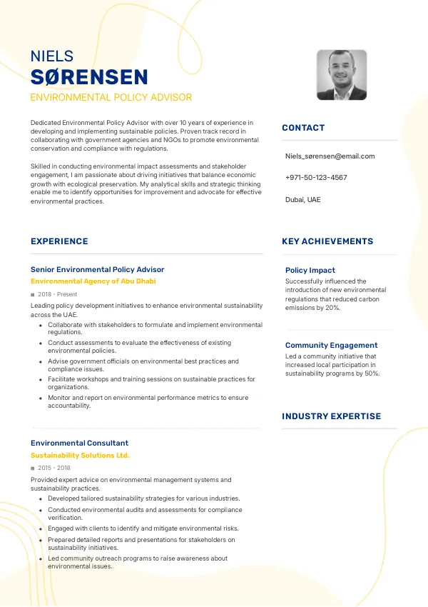 Resume Examples for Environmental Policy Advisors