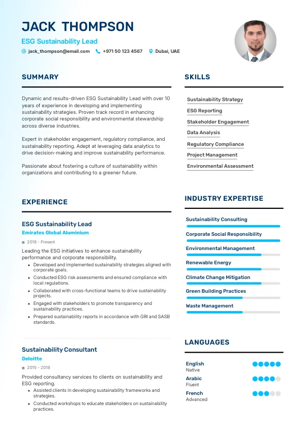 Enhance your resume with key skills for the ESG Sustainability Lead role in 2026.