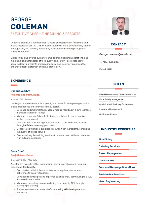 In 2026, the role of Executive Chef in the UAE's fine dining and resorts is set to evolve significantly, incorporating advanced culinary technologies and sustainable practices. The integration of AI-driven kitchen management systems will redefine menu planning and inventory management, allowing chefs to focus more on creativity and less on logistics. A TrueCV-optimized resume will highlight your adaptability to these changes, showcasing your readiness for this dynamic environment.