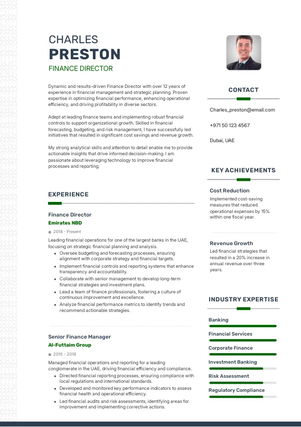 - Achievement: Successfully led a financial transformation project that resulted in a 30% increase in operational efficiency, a metric that aligns with 2026 expectations and supports long-term residency and Golden Visa consideration.