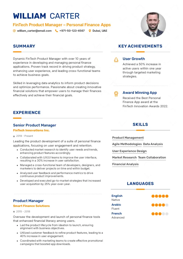 Craft a resume that showcases your skills as a FinTech Product Manager for 2026.