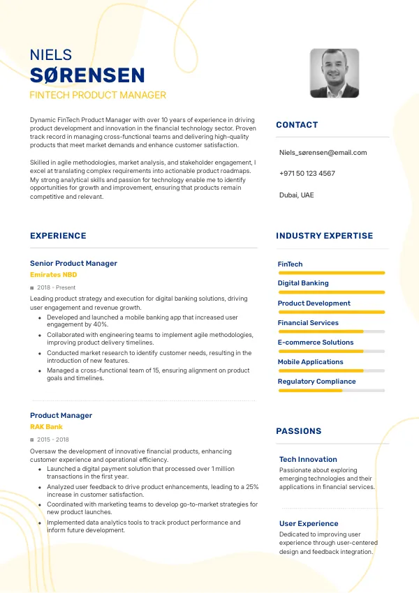 As demand for FinTech Product Managers rises in 2026, salaries are expected to increase significantly, reflecting the complexity and importance of the role. Higher compensation often correlates with roles that support long-term residency, making this position attractive for candidates seeking Golden Visa pathways. TrueCV can help highlight your achievements to align with these expectations.