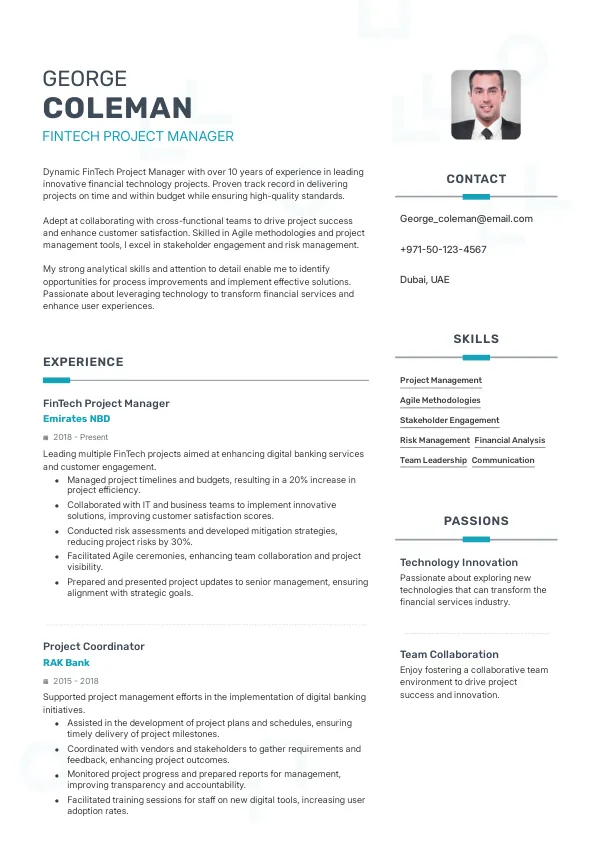 Resume Examples for FinTech Project Managers