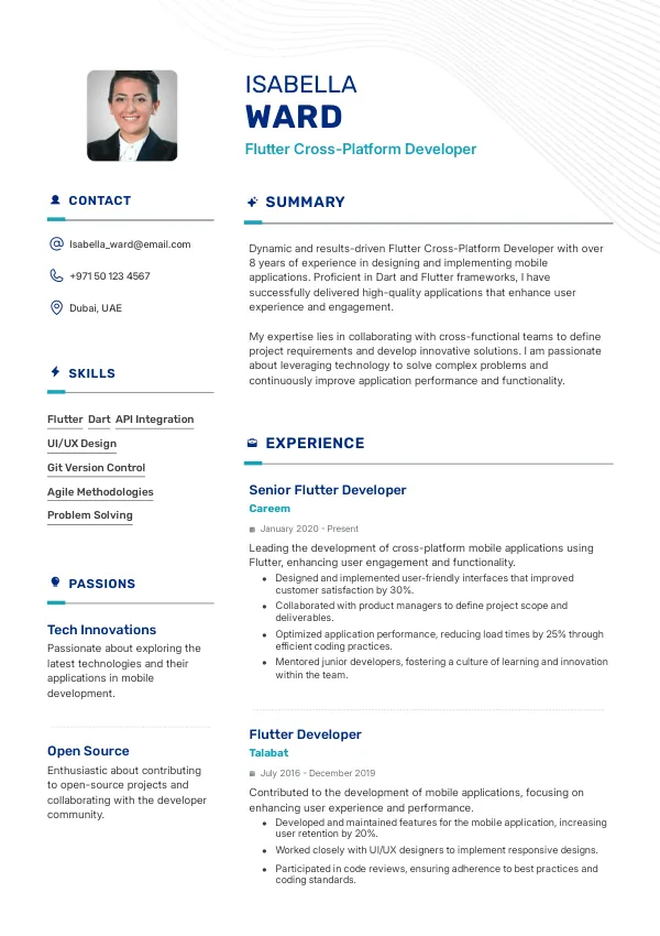 Major companies in the UAE, such as Emirates Airlines, Careem, and Noon, are ramping up their hiring of Flutter developers to enhance their mobile offerings. These employers are looking for candidates who can deliver innovative solutions that meet evolving customer expectations. A TrueCV-aligned resume will help candidates stand out in the application process, showcasing their relevant skills and experiences.