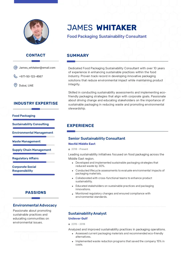 The UAE's commitment to sustainability will create a stable job market for Food Packaging Sustainability Consultants in 2026. Companies are likely to sponsor visas for qualified candidates, ensuring a steady flow of opportunities for skilled professionals. A TrueCV-optimized resume can help candidates stand out in this competitive landscape, enhancing their employability.