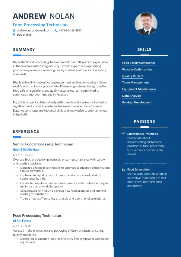 The food processing industry in the UAE is projected to maintain strong growth, providing job stability for Food Processing Technicians in 2026. The continuous investment in food safety and technology will ensure a steady demand for skilled professionals. Candidates can enhance their employability by showcasing their adaptability and skills in their TrueCV-optimized resumes.