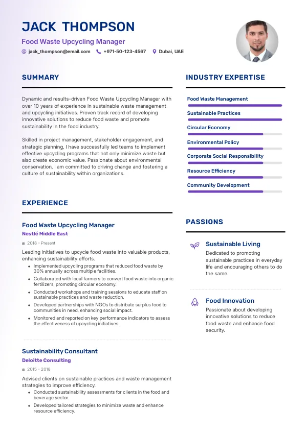 Resume Examples for Food Waste Upcycling Managers