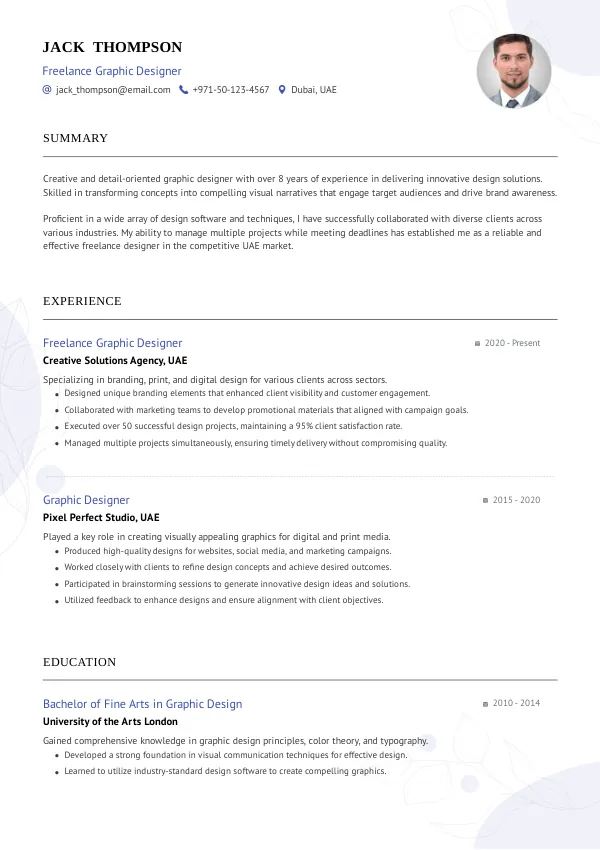 - **Creation of UAE visa-compliant resumes** aligned with Freelance Graphic Designer requirements.