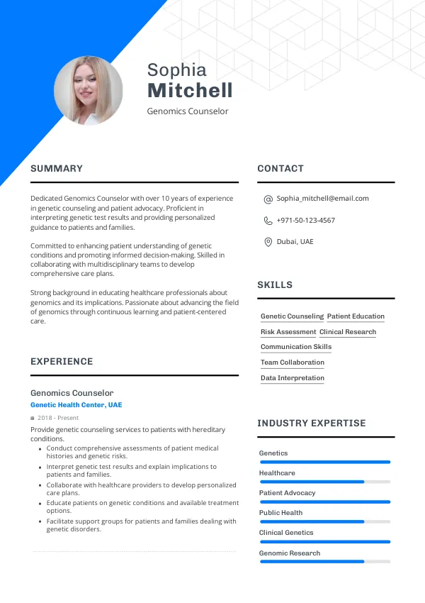 As the role of Genomics Counselor evolves, ensure your resume reflects the latest industry standards and expectations with TrueCV. Start crafting your future today!