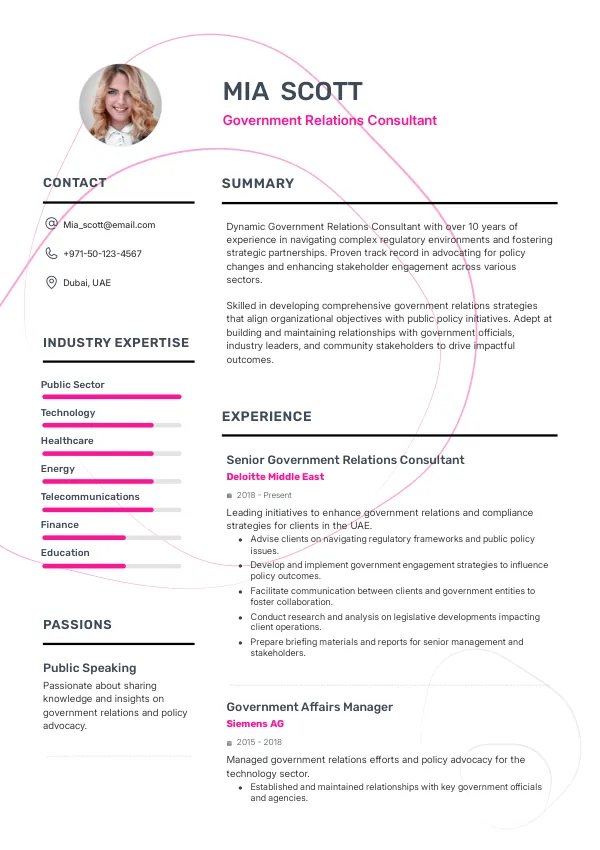 Enhance your resume for the Government Relations Consultant role with TrueCV's expert guidance.