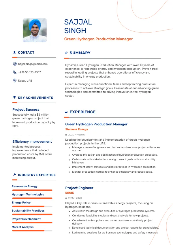Ensure your resume highlights your skills for the Green Hydrogen Production Manager role in 2026.