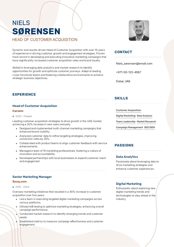 Resume Examples for the Head of Customer Acquisition Role