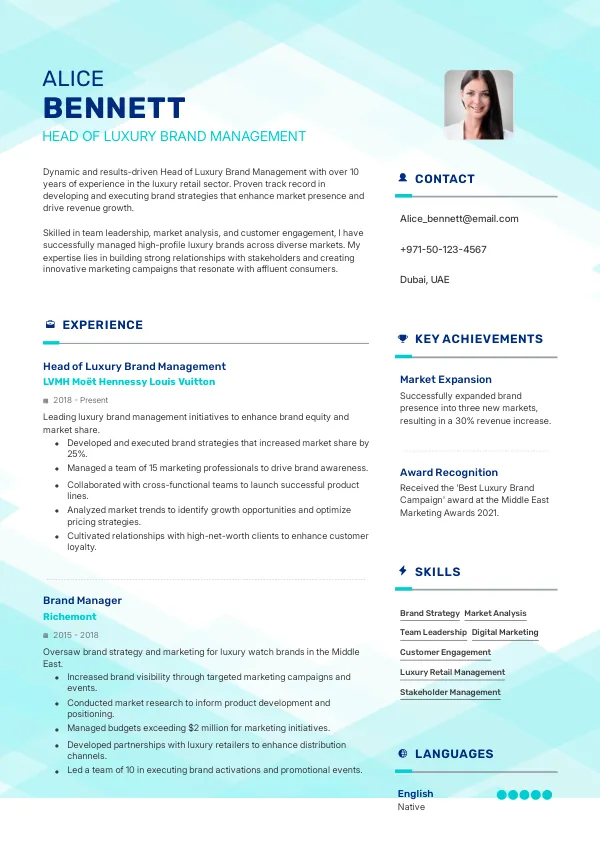 Resume Examples for Heads of Luxury Brand Management