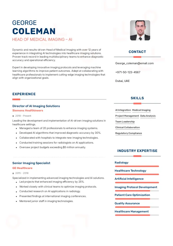 - Achievement: Successfully integrated AI imaging systems that improved diagnostic accuracy by 30%, a contribution that aligns with long-term residency and Golden Visa considerations.