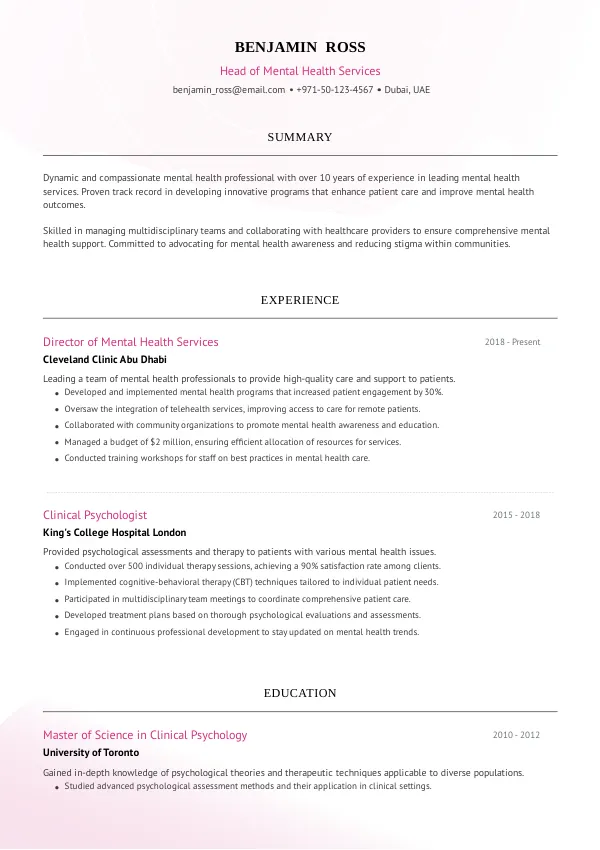 Position yourself for success as a Head of Mental Health Services in 2026. Leverage TrueCV to enhance your resume and align with Golden Visa pathways for long-term residency in the UAE.
