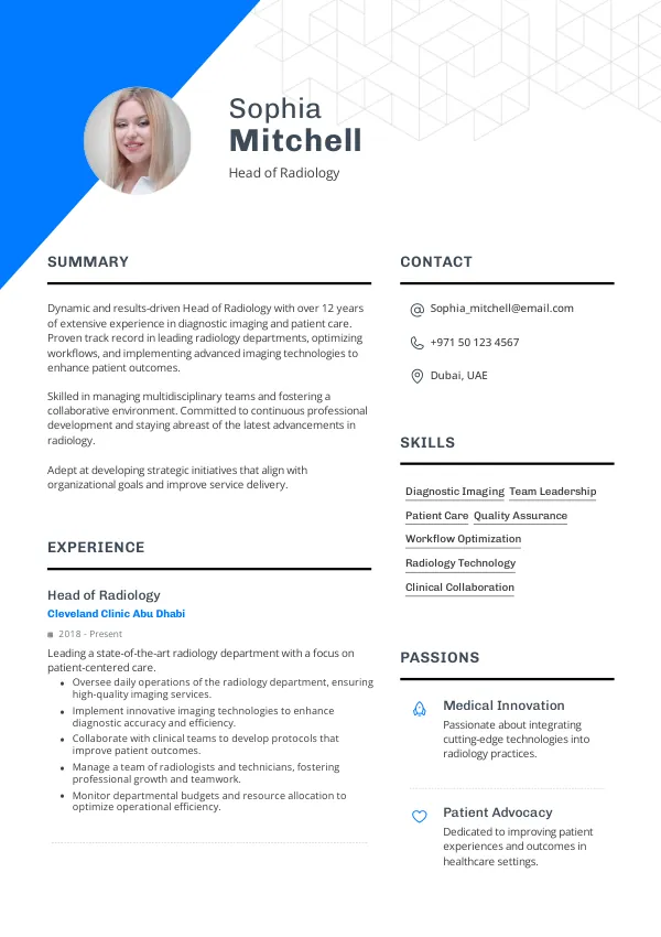 The Head of Radiology role in 2026 is evolving with advancements in AI-driven imaging technologies and tele-radiology platforms, enhancing diagnostic accuracy and patient care. This evolution requires leaders who can integrate these innovations into clinical practice, positioning them as vital contributors to healthcare systems. A well-crafted resume that highlights your leadership in these areas can strengthen seniority signaling and visibility of your contributions, which are crucial for Golden Visa consideration.