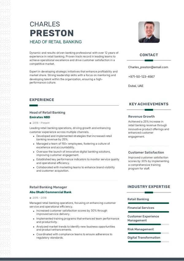Resume Examples for Head of Retail Banking
