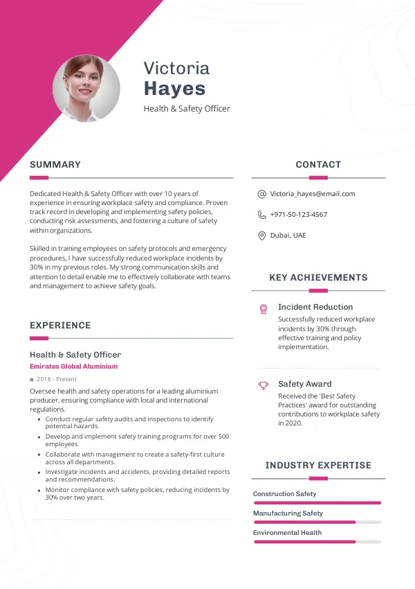 Resume Examples for Health & Safety Officers
