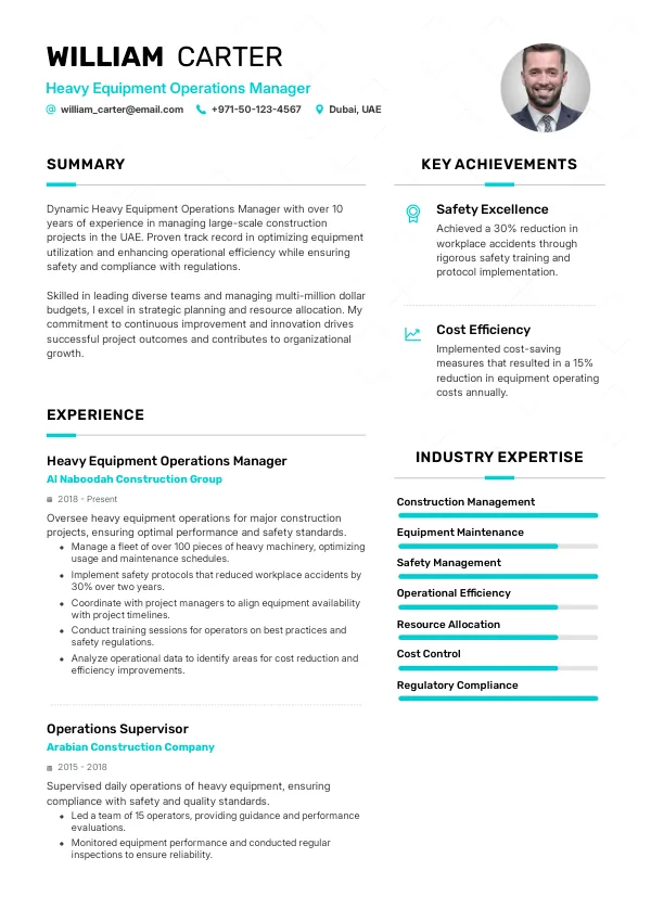 Leading construction firms such as Arabtec, Al Habtoor Group, and ACC are ramping up their hiring efforts for Heavy Equipment Operations Managers in 2026. These employers are looking for candidates who can navigate the complexities of modern construction projects and ensure compliance with new regulations. A TrueCV-optimized resume will help you stand out in this competitive hiring landscape.