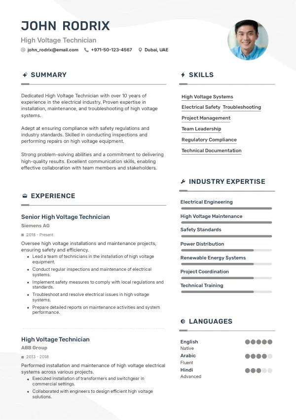 As the industry evolves, the responsibilities of High Voltage Technicians will expand to include the integration of renewable energy sources and advanced monitoring systems. Technicians will be expected to troubleshoot and optimize smart grid technologies, requiring a deeper understanding of both electrical systems and digital tools. A TrueCV-optimized resume will reflect these evolving responsibilities, emphasizing your readiness to take on new challenges.