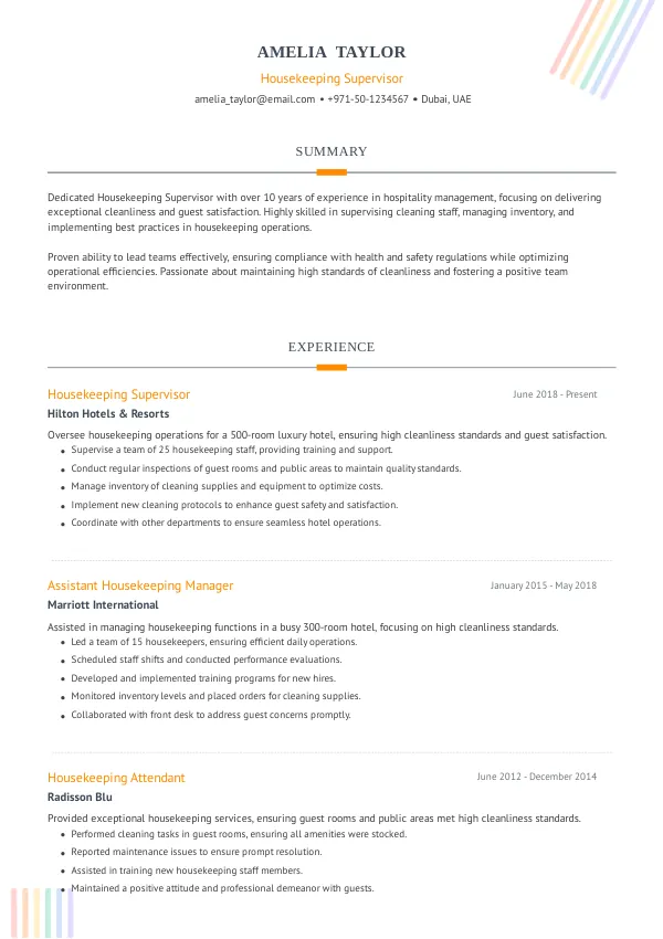 - Create a UAE visa-compliant Housekeeping Supervisor Resume aligned with UAE Work Residency Visa requirements.