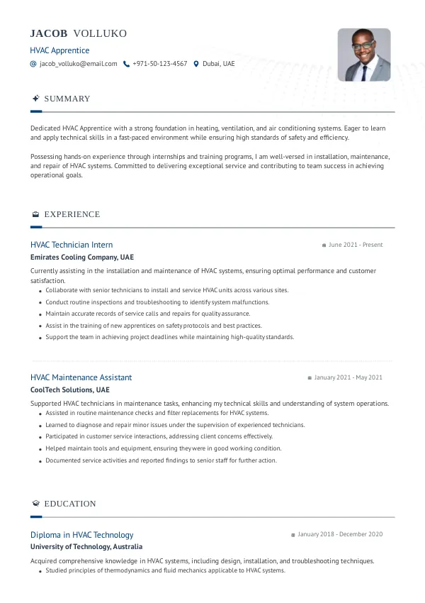 Craft a standout resume tailored for HVAC Apprentice roles in 2026 with TrueCV.