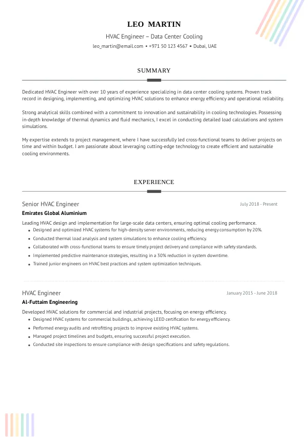 Leading companies such as Emirates Global Aluminium, Etisalat, and Abu Dhabi National Oil Company (ADNOC) are ramping up their hiring efforts for HVAC Engineers in Data Center Cooling in 2026. These organizations are investing heavily in infrastructure and sustainability initiatives, creating a robust demand for skilled professionals. A TrueCV-optimized resume can help you stand out to these top employers, increasing your chances of landing an interview.