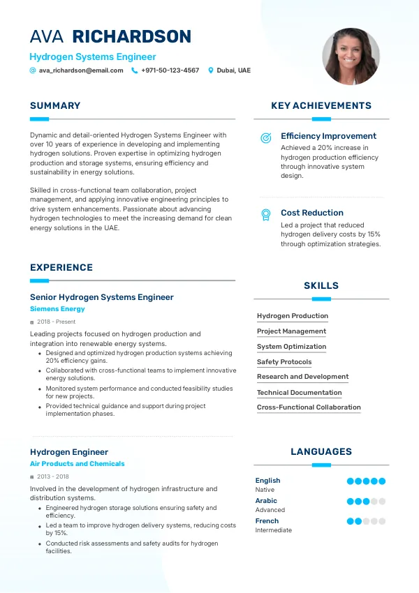 A results-focused Hydrogen Systems Engineer resume that highlights your impact and passes ATS filters.