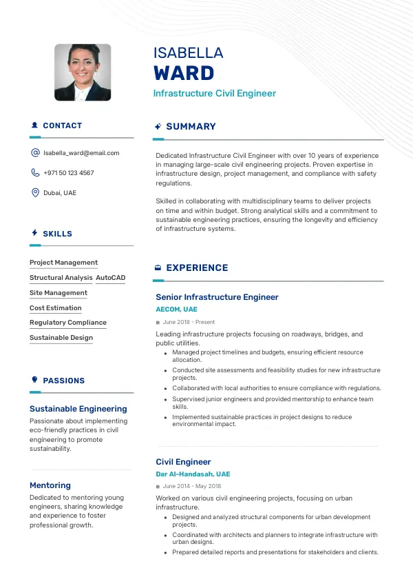 With the UAE's ongoing investment in infrastructure, the job market for Infrastructure Civil Engineers will remain stable, providing ample opportunities for skilled professionals. Employers will increasingly seek candidates who can demonstrate adaptability and a strong understanding of new technologies. A TrueCV-optimized resume will help candidates present their qualifications effectively, enhancing their employability in this competitive market.
