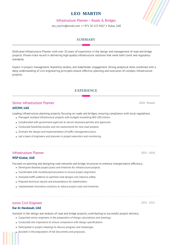 In 2026, the role of Infrastructure Planner for Roads & Bridges in the UAE will significantly evolve, focusing on sustainable construction practices and smart infrastructure integration. As urbanization accelerates, planners will need to adapt to new technologies such as AI-driven project management tools and advanced simulation software. A TrueCV-optimized resume will highlight your adaptability to these changes, making you a more attractive candidate.