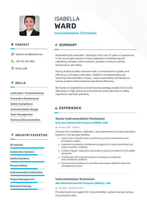 With the increasing complexity of instrumentation systems and the demand for skilled technicians, salaries for Instrumentation Technicians in 2026 are expected to rise significantly. The combination of advanced skills and the critical nature of their work will drive compensation growth, making this an attractive career path. A TrueCV-optimized resume can help you effectively communicate your value and negotiate competitive salaries.