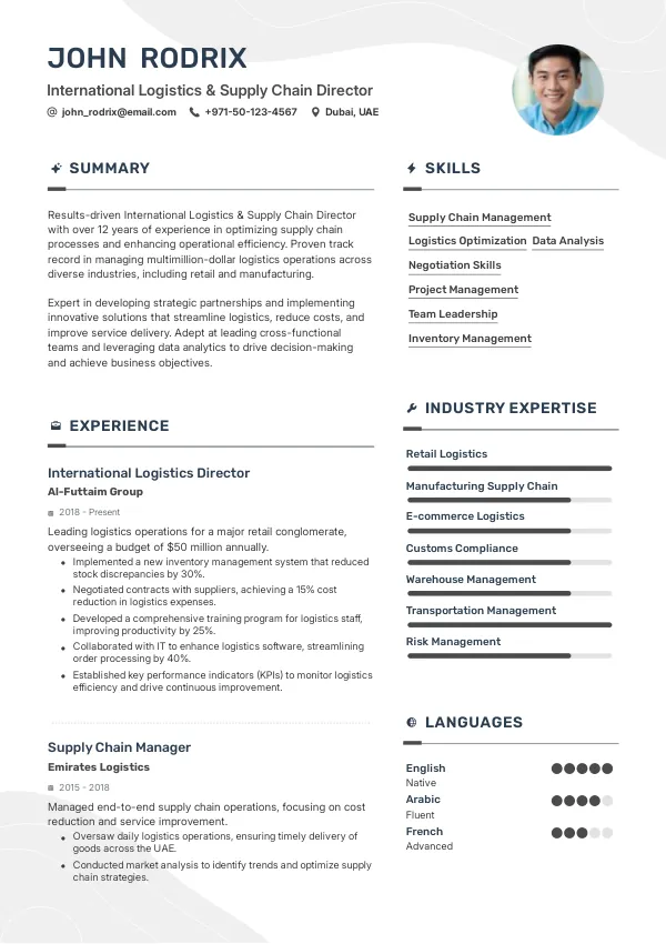 The UAE's strategic position as a global logistics hub ensures that the demand for skilled International Logistics & Supply Chain Directors will remain strong in 2026. Employers are likely to offer more stable career opportunities, especially for candidates who can demonstrate adaptability to regulatory changes and technological advancements. A well-crafted TrueCV can enhance employability by showcasing relevant experience and skills.