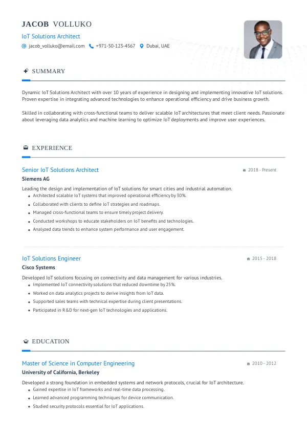 Resume Examples for IoT Solutions Architects