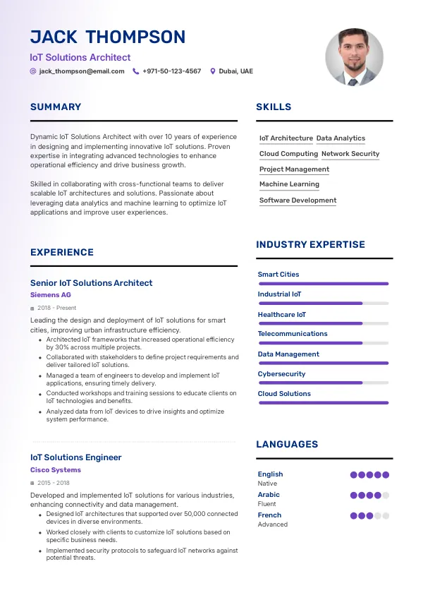 Resume Examples for IoT Solutions Architects