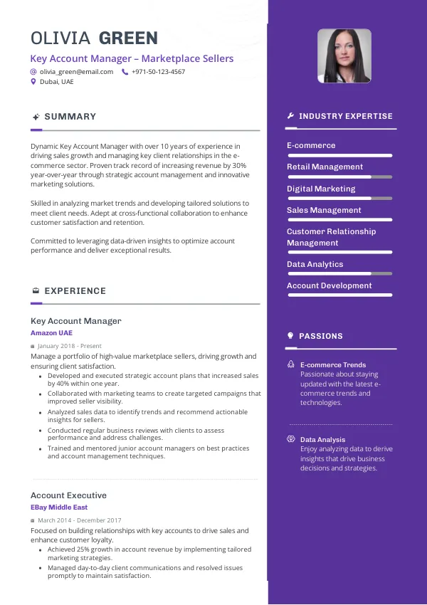 Leading e-commerce companies such as Amazon UAE, Noon, and Carrefour will be actively seeking Key Account Managers in 2026 to drive their marketplace seller strategies. These employers will prioritize candidates who can demonstrate a strong understanding of market dynamics and seller needs. A TrueCV-optimized resume will help you stand out to these top employers by aligning your skills with their hiring criteria.