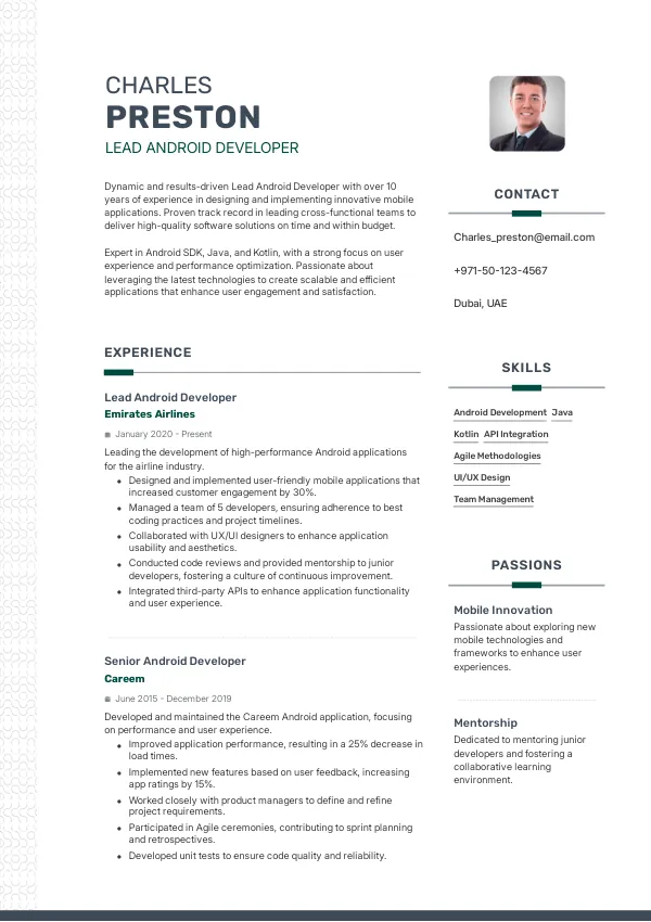 Resume Examples for Lead Android Developers