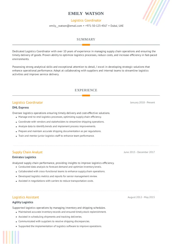 Create My Logistics Coordinator ResumeHow Truecv Elevates Your Resume for UAE Success