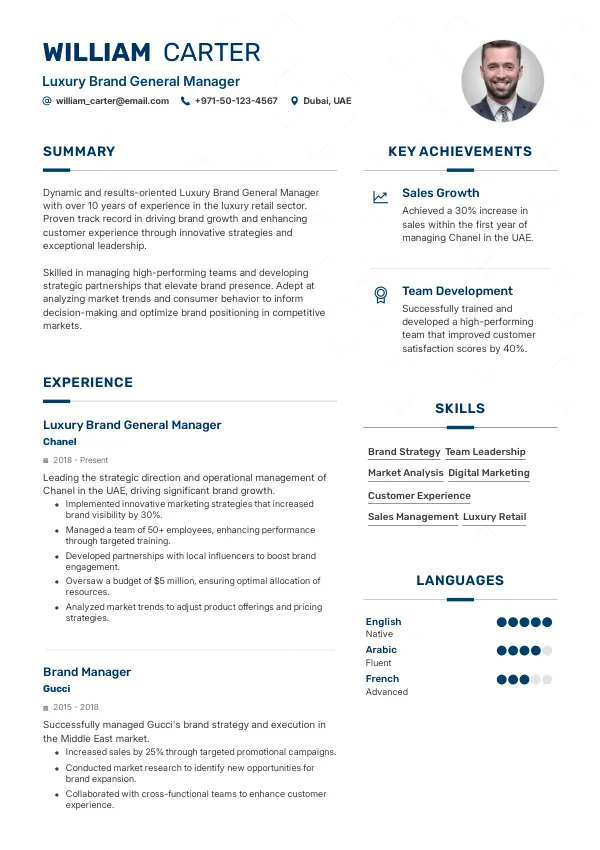 Position yourself for success in 2026 as a Luxury Brand General Manager. Leverage TrueCV to enhance your resume and align with Golden Visa opportunities for long-term residency.