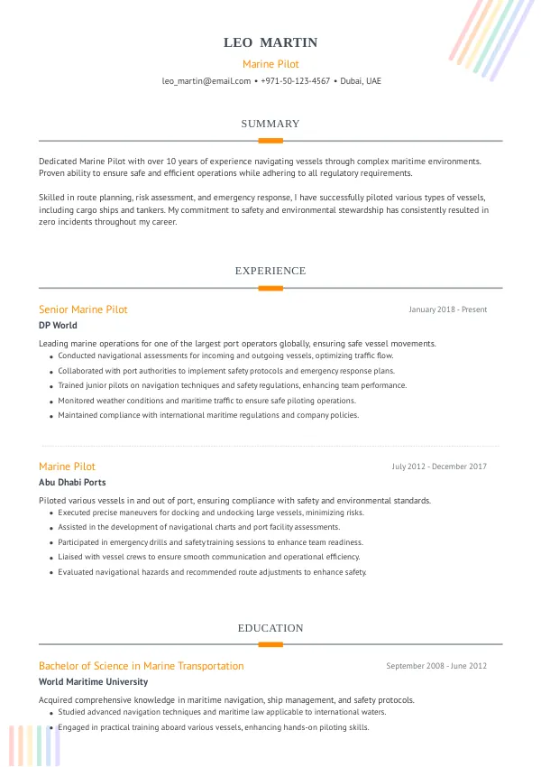 Leading maritime companies such as DP World, Abu Dhabi Ports, and Emirates Maritime are ramping up their hiring efforts for Marine Pilots in 2026. These employers are looking for candidates who can navigate the complexities of modern maritime logistics while adhering to new safety and environmental regulations. A TrueCV-optimized resume will help you stand out to these top employers.