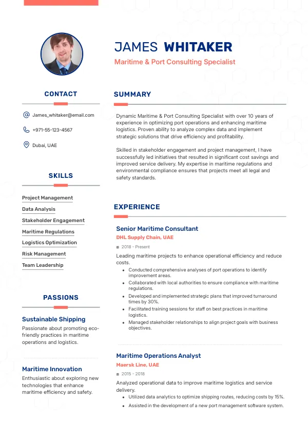 Craft a standout resume tailored for the Maritime & Port Consulting Specialist role in 2026.