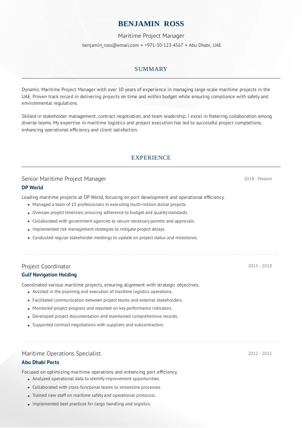 Build My Maritime Project Manager – Abu Dhabi Ports ResumeEvolving Responsibilities of Maritime Project Managers