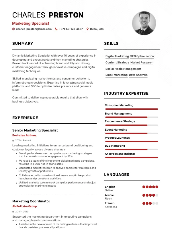 Are you a Marketing Specialist in the UAE looking to stand out in a competitive job market? Our professional CV & resume writing service is designed to help you articulate your skills and achievements effectively.